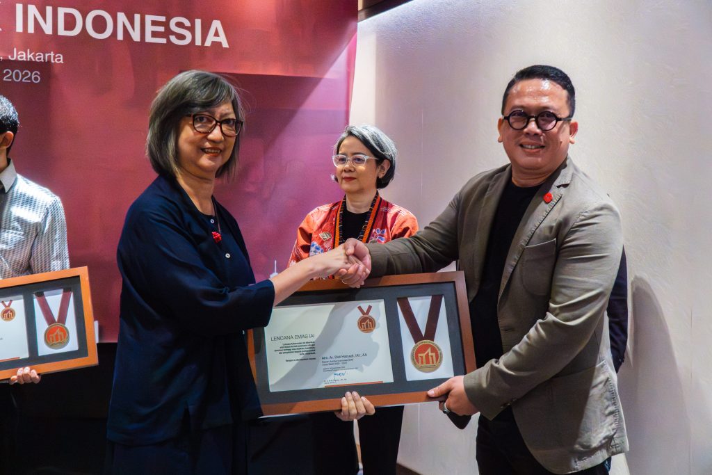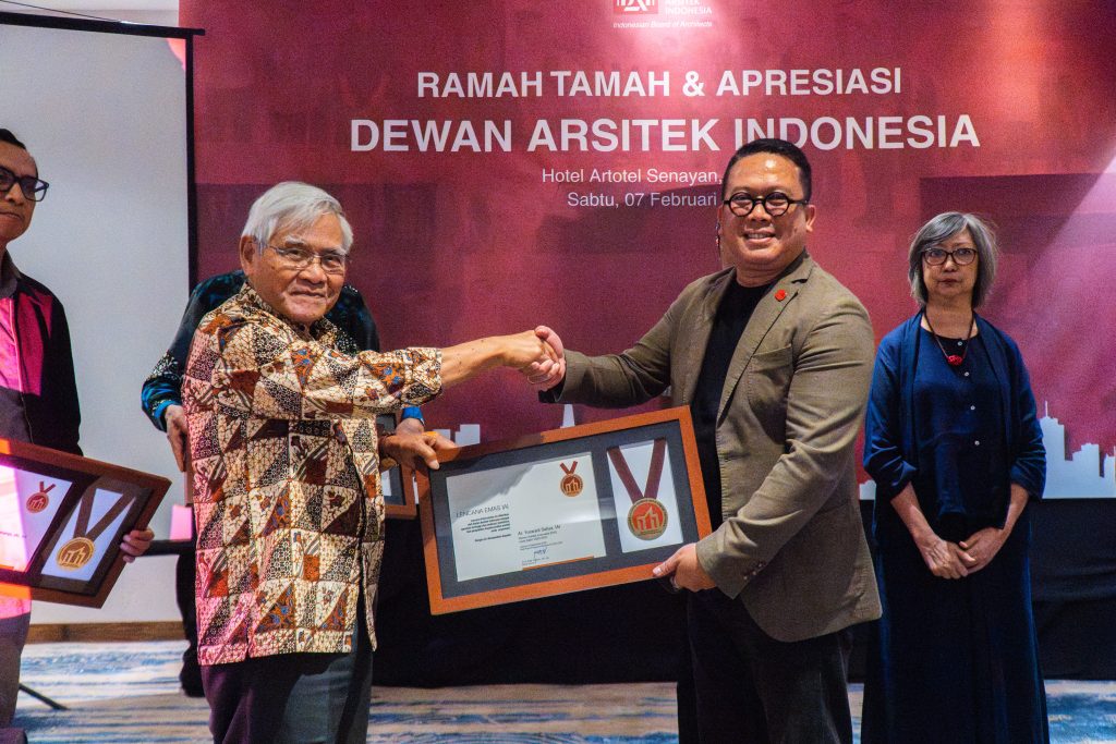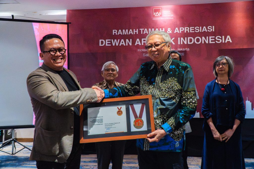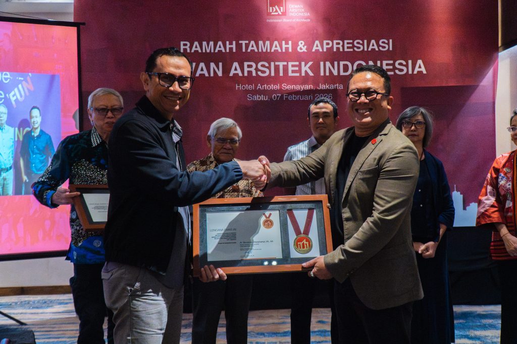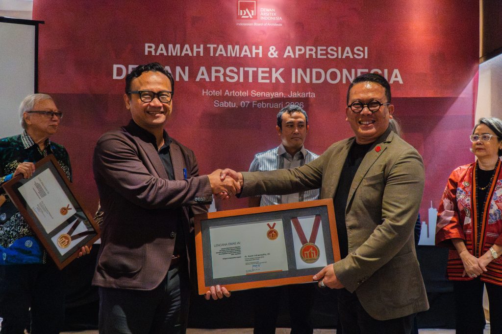 Pada kesempatan tersebut, Pengurus Nasional Ikatan Arsitek Indonesia turut menyerahkan tanda kasih kepada seluruh anggota Dewan Arsitek Indonesia periode 2020–2025 sebagai bentuk apresiasi atas dedikasi, pengabdian, dan kontribusi yang telah diberikan selama lima tahun terakhir.